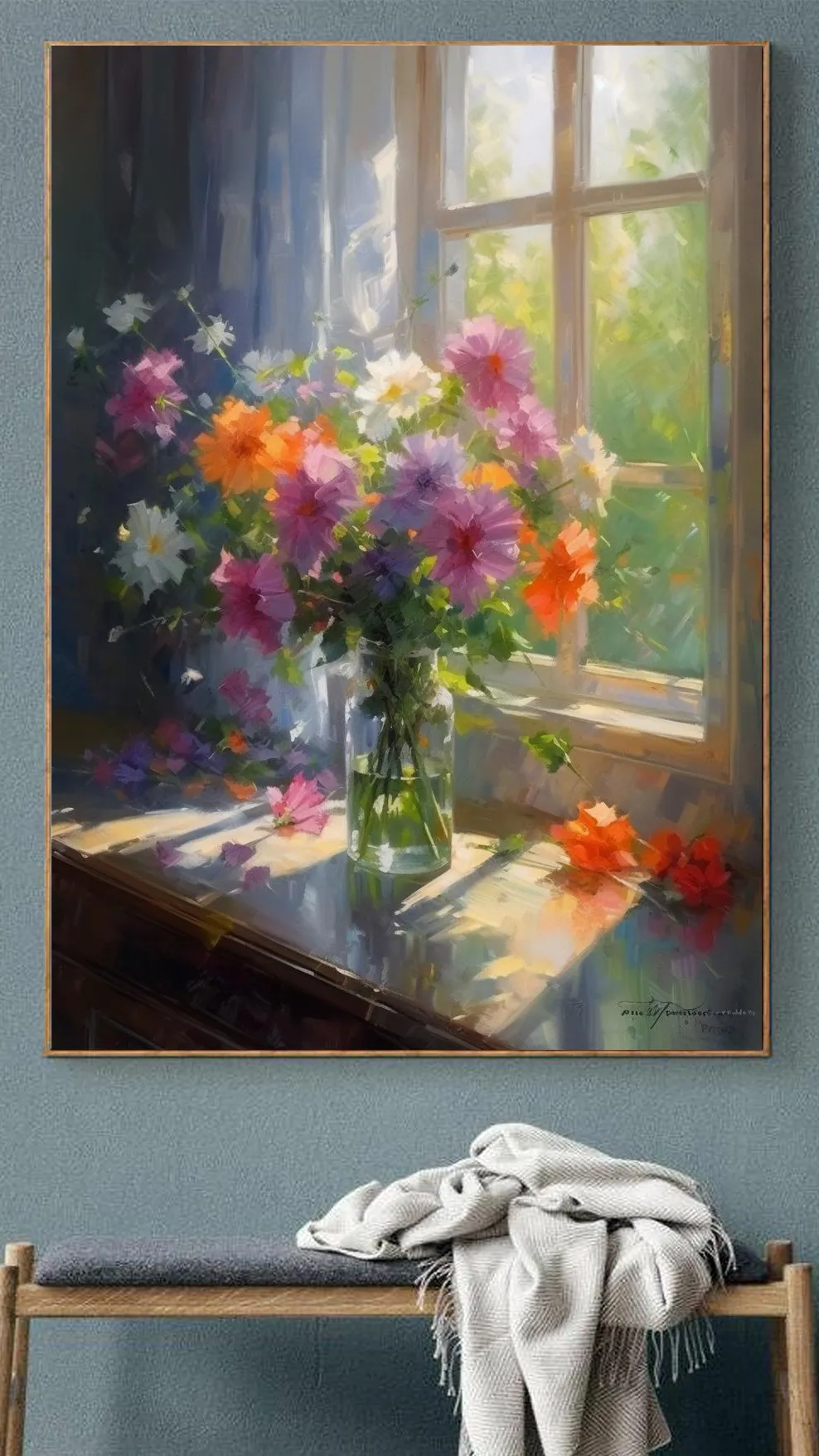 Yağlı boya tablodaki o derin fırça ve spatula izlerinin görsel şöleni, artık tamamen düz yüzeyli dijital baskı kalitesiyle duvarınızda. Tablomuz fiziksel bir kabartma içermez; ancak yüksek çözünürlüklü baskı teknolojisi sayesinde fırça darbelerinin tüm detaylarını görsel bir derinlik olarak sunar.